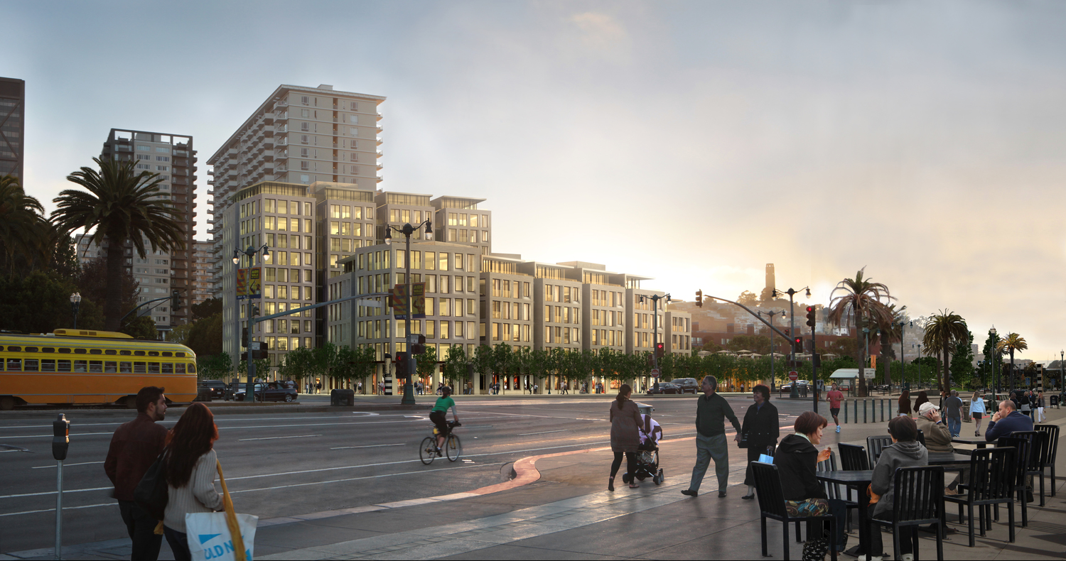 Community renovation and transformation of recreational facilities, retail shops, residential buildings and restaurants in downtown San Francisco on Washington street between the Embarcadero and Drumm street.