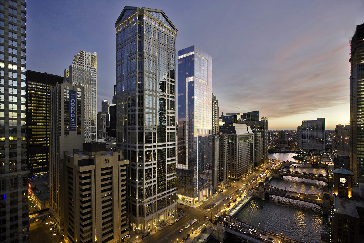 Marketing images for a sixty-story, 500 unit luxury rental apartment building on the Chicago riverfront