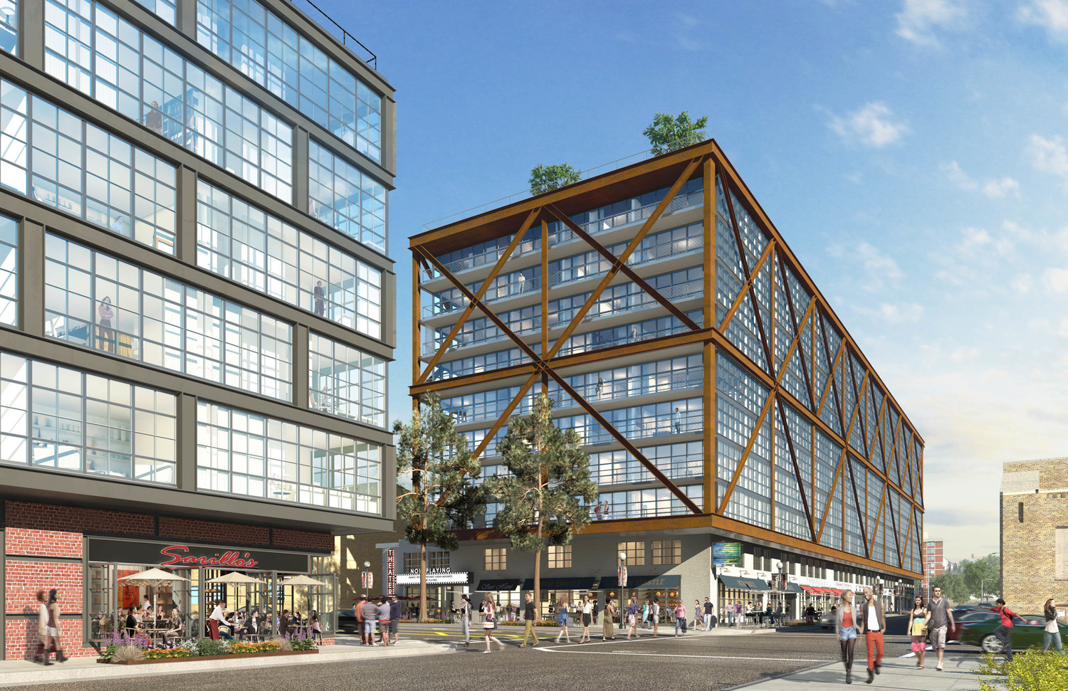 Marketing images for The JBG Companies' two-building residential and retail development at the corner of 8th and V Streets in Washington, D.C.