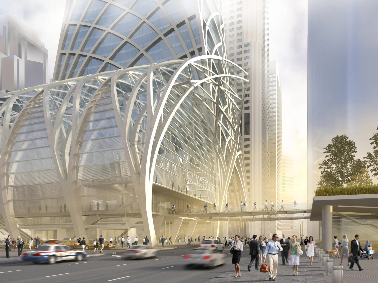 Competition presentation images for SOM's design proposal for a new Transbay terminal complex